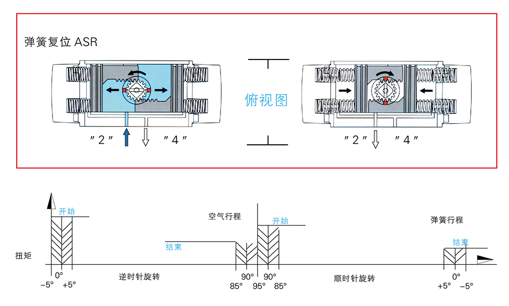 空气行程:开始:弹簧释放状态下的执行机构扭矩             结束:弹簧压缩状态下的执行机构扭矩